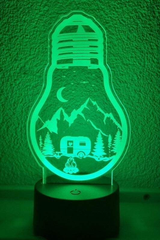 Außergewöhnliche LED Lampe für den Camping Liebhaber, mit verschiedenen Farben und Farbwechsel.