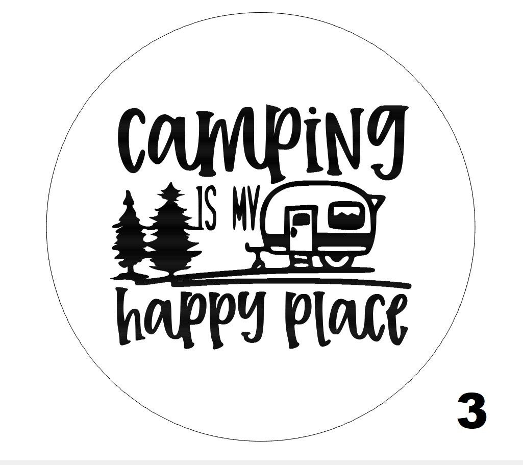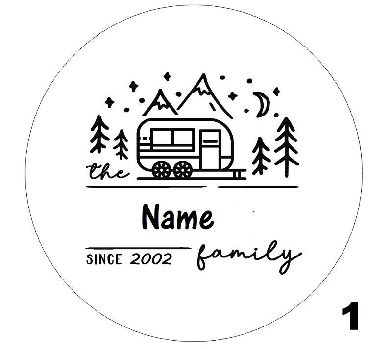 Vorratsdose aus Glas mit Bambusdeckel und einer Abbildung vom Camping mit Namen und Jahreszahl.